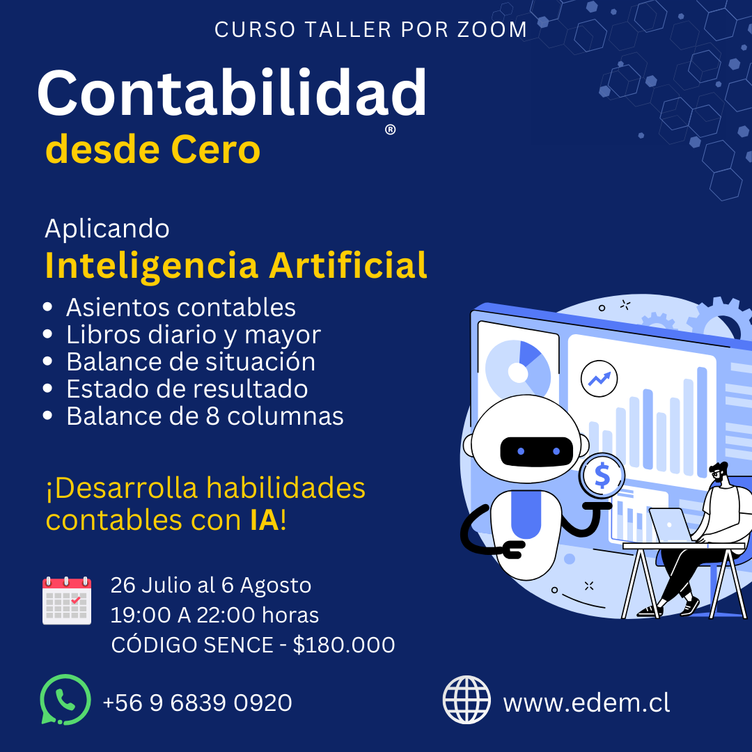 En este curso aprenderás contabilidad desde cero, es decir, a partir del registro de transacciones contables llegarás a elaborar balances y estados de resultados. Trabajaremos con ChatGPT, APPs del Método Barros y otras herramientas de inteligencia artificial que podrás utilizar como asistentes de contabilidad en la realización de asientos contables, preparación de los libros diario y mayor, elaboración de balances y cálculo de indicadores financieros.